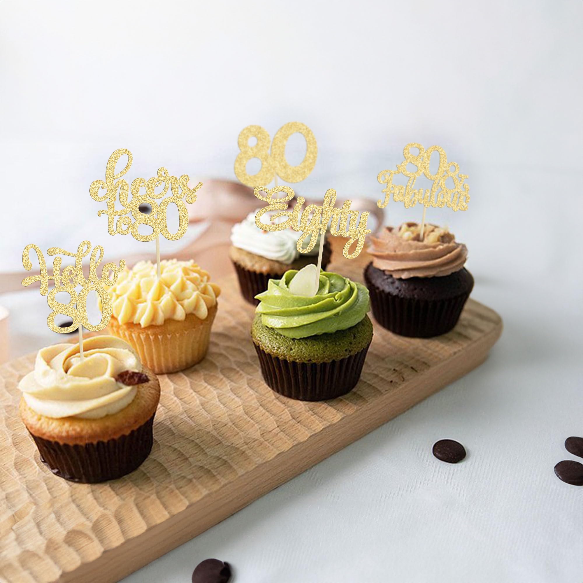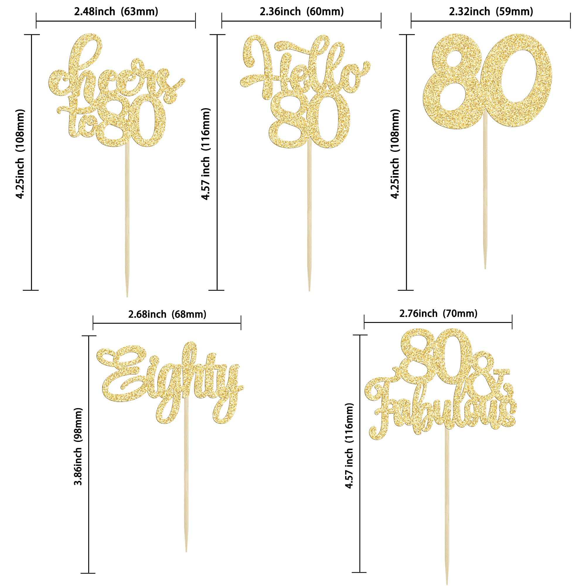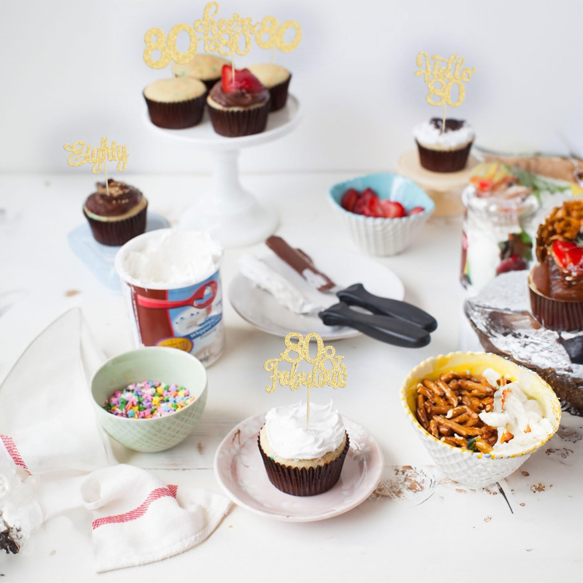 -Premium Material: These Happy 80th Birthday Cupcake Toppers are made of high quality 300 gram card stock and food-grade toothpick, very safe to put them on cakes, cupcakes, ice cream, fruits, pie, dessert, cheese or any dish and food appetizer you want to decorate.
