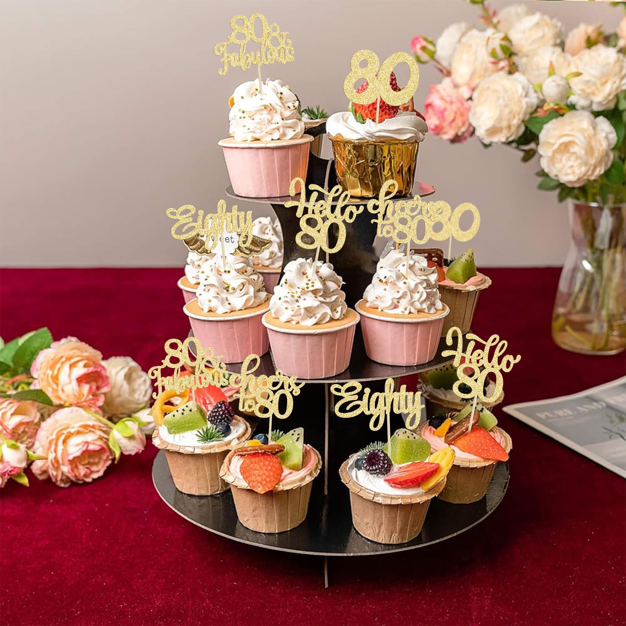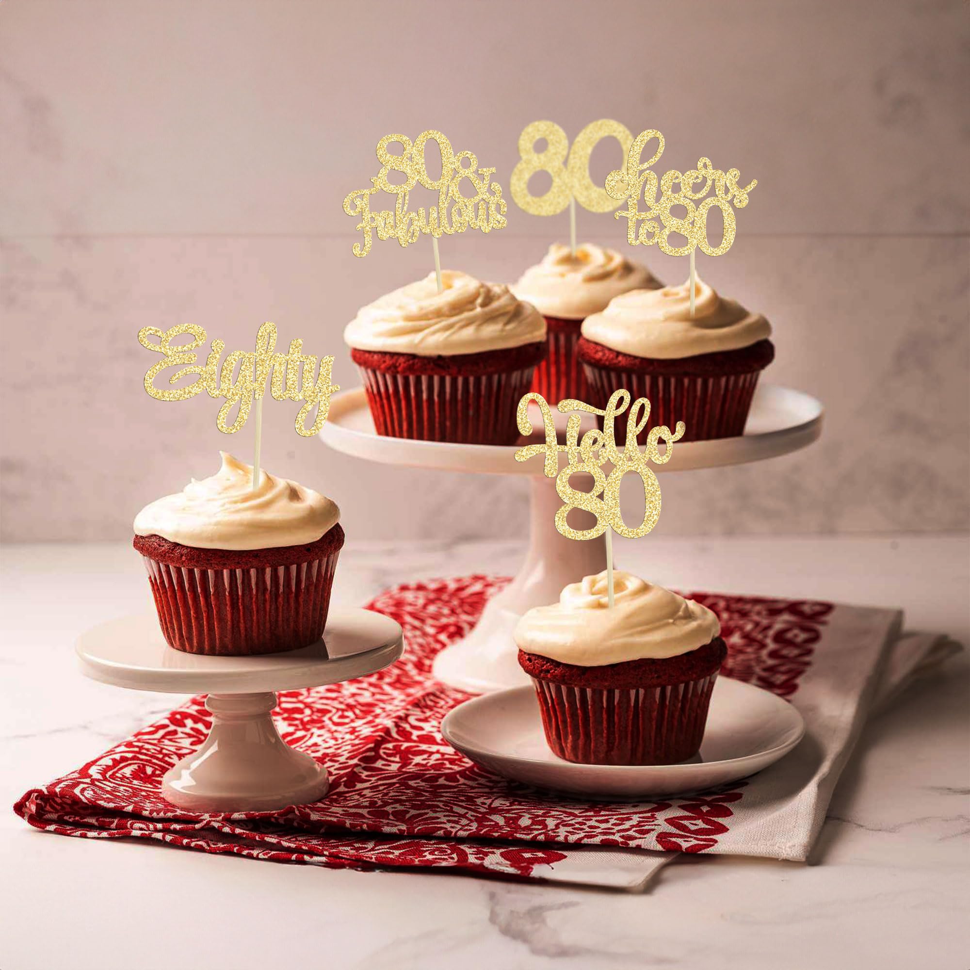 -Package included: 24Pcs Happy 80th Birthday Cupcake Toppers. Comes with assembled, so you can insert into your cake directly, which make your cake more interesting.