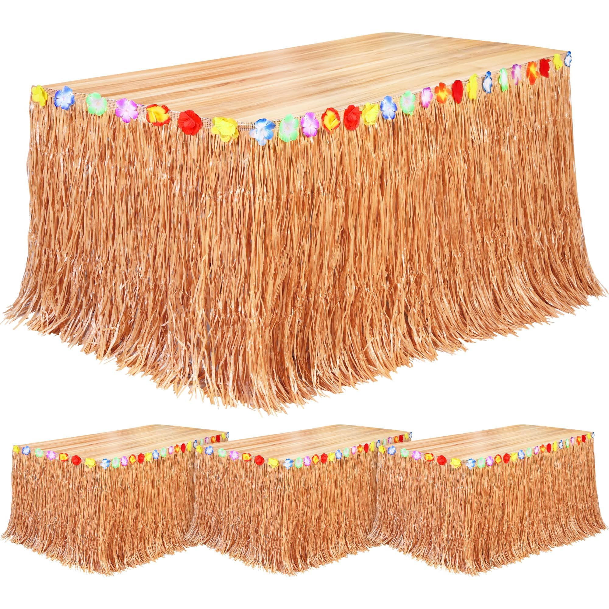 What you will receive: the package comes with 4 packs of grass table skirts in each set, and each Hawaiian themed grass table skirt natural is also paired with 5 pairs of adhesive hoop and loop tapes, convenient and practical for your holiday decorations