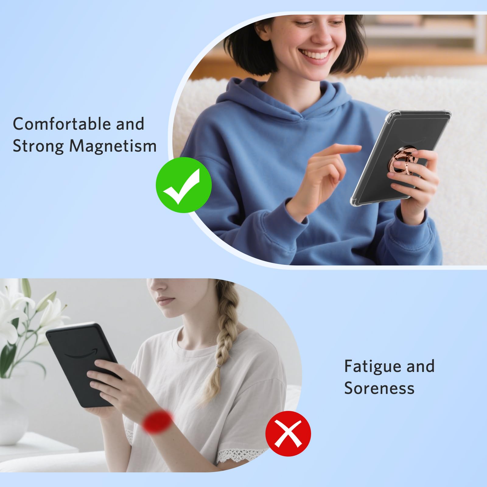 Magnetic Clear Case: This case features a clear and lightweight design, which can vividly showcase the style of your Kindle. The reinforced corners provide enhanced protection. In addition, it is also compatible with iPhone wireless charger.