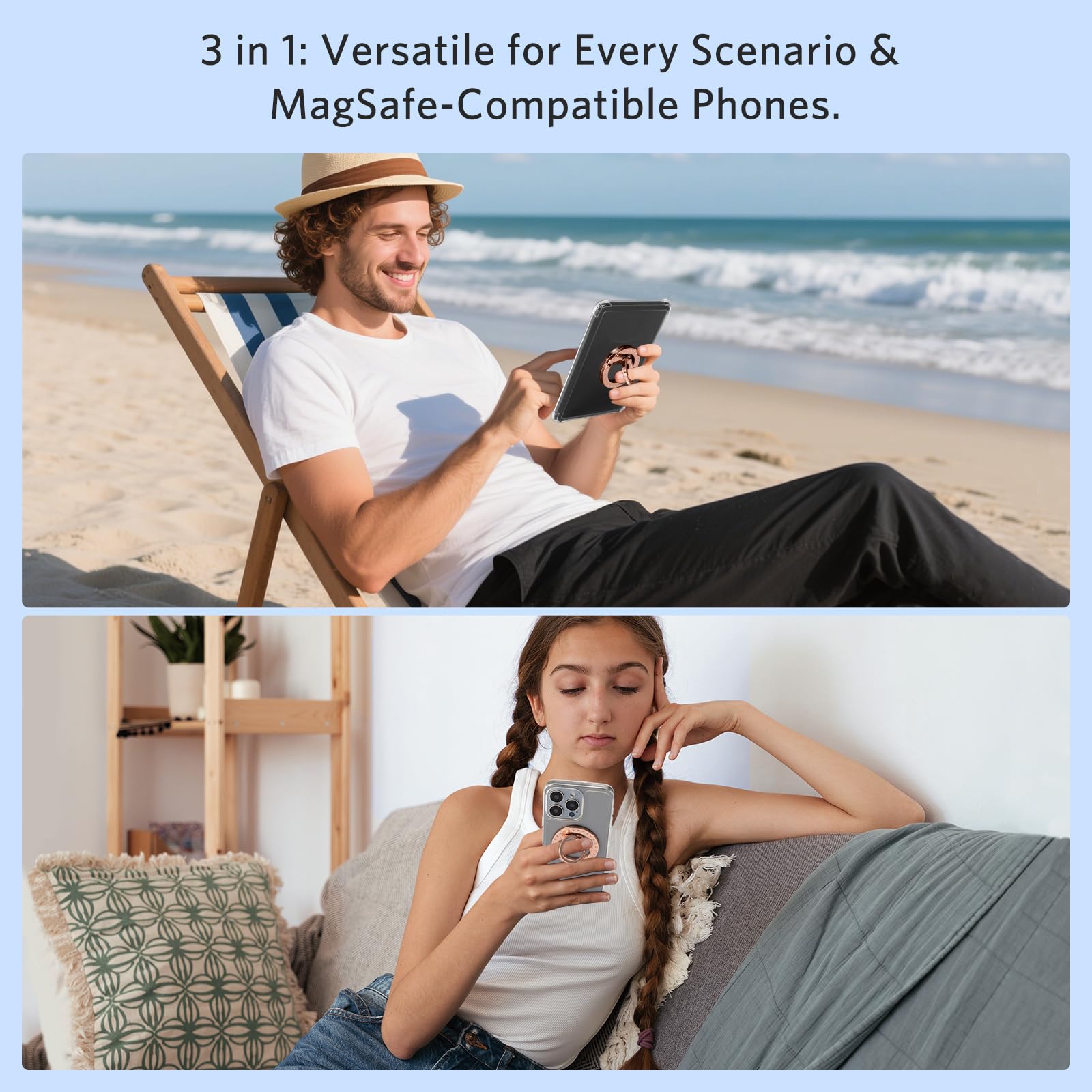 Glamorous and Durable Diamond-Embedded Magnetic Ring Grip:It is made of high-grade metal, and the smooth silver outer ring sparkles as brightly as a diamond, offering both remarkable aesthetics and durability. The strong magnet ensures a secure attachment to magnetic cases. It can be held with one hand, reducing hand fatigue. Additionally, it is compatible with MagSafe-enabled smartphones.