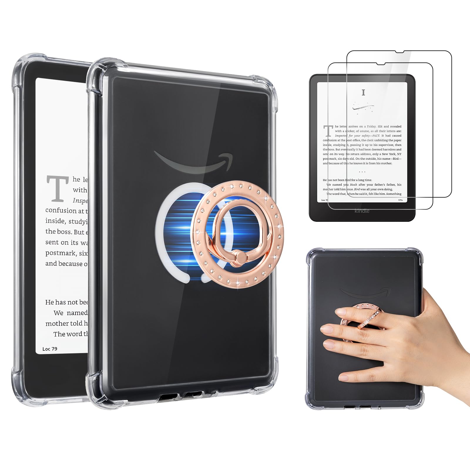 Complete 3 in 1 Bundle: Includes a magnetic clear case, two nano-matte explosion-proof PET screen protectors, and a diamond-embedded magnetic ring grip.Get everything you need to protect and enhance your reading experience in one convenient package.
