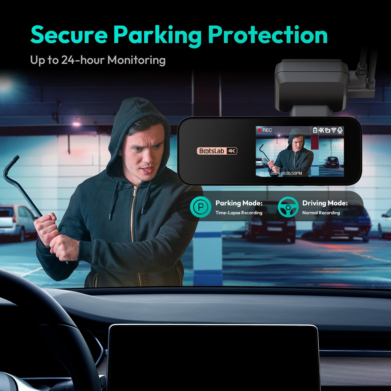 【Secure Parking Protection】Provides up to 24-hour monitoring with time-lapse recording or collision-triggered normal recording while parked, ensuring your car is always protected.