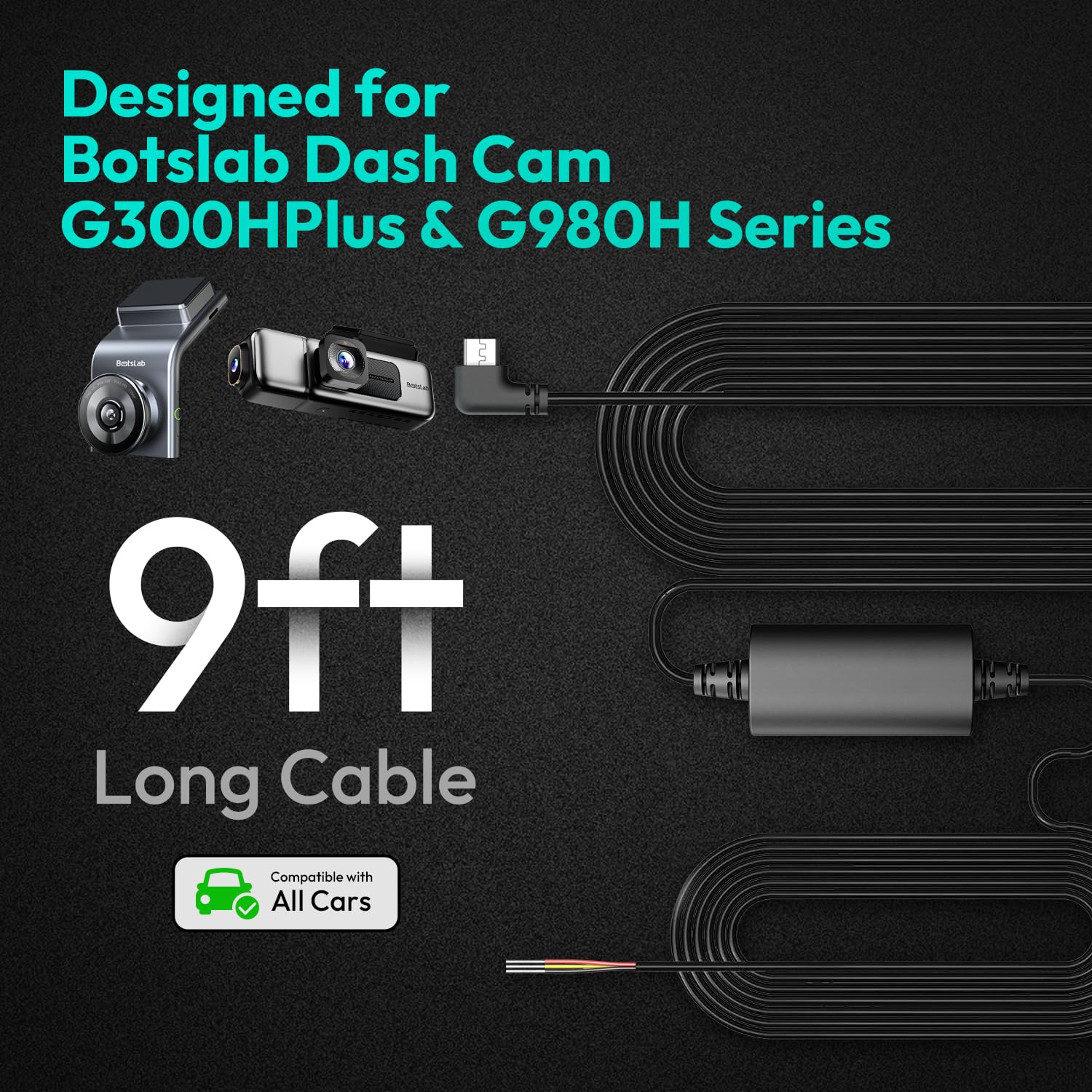 【Designed for Botslab dashcam G980H Series】Specifically tailored for the G980H/G980HPro/G980H 4-Channel/G980H 3-Channel dash cam with a Type-C port. The 9ft long cable is compatible with most car types for versatile installation.