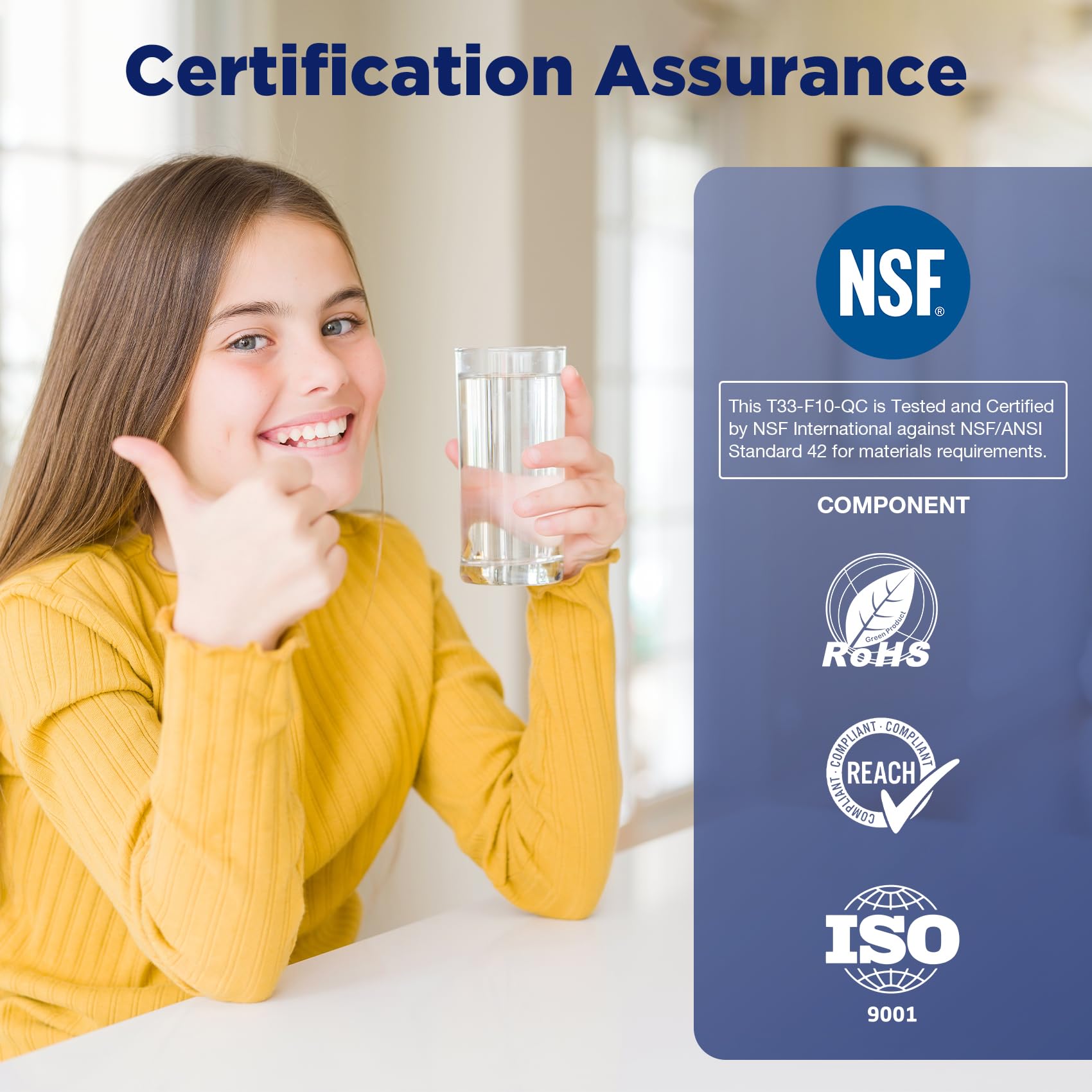 PREMIUM MATERIAL - Made from food-grade, BPA-free activated coconut shell carbon with a highly porous structure. Certified to meet NSF/ANSI 42 standards, ensuring your water is great-tasting for your home.