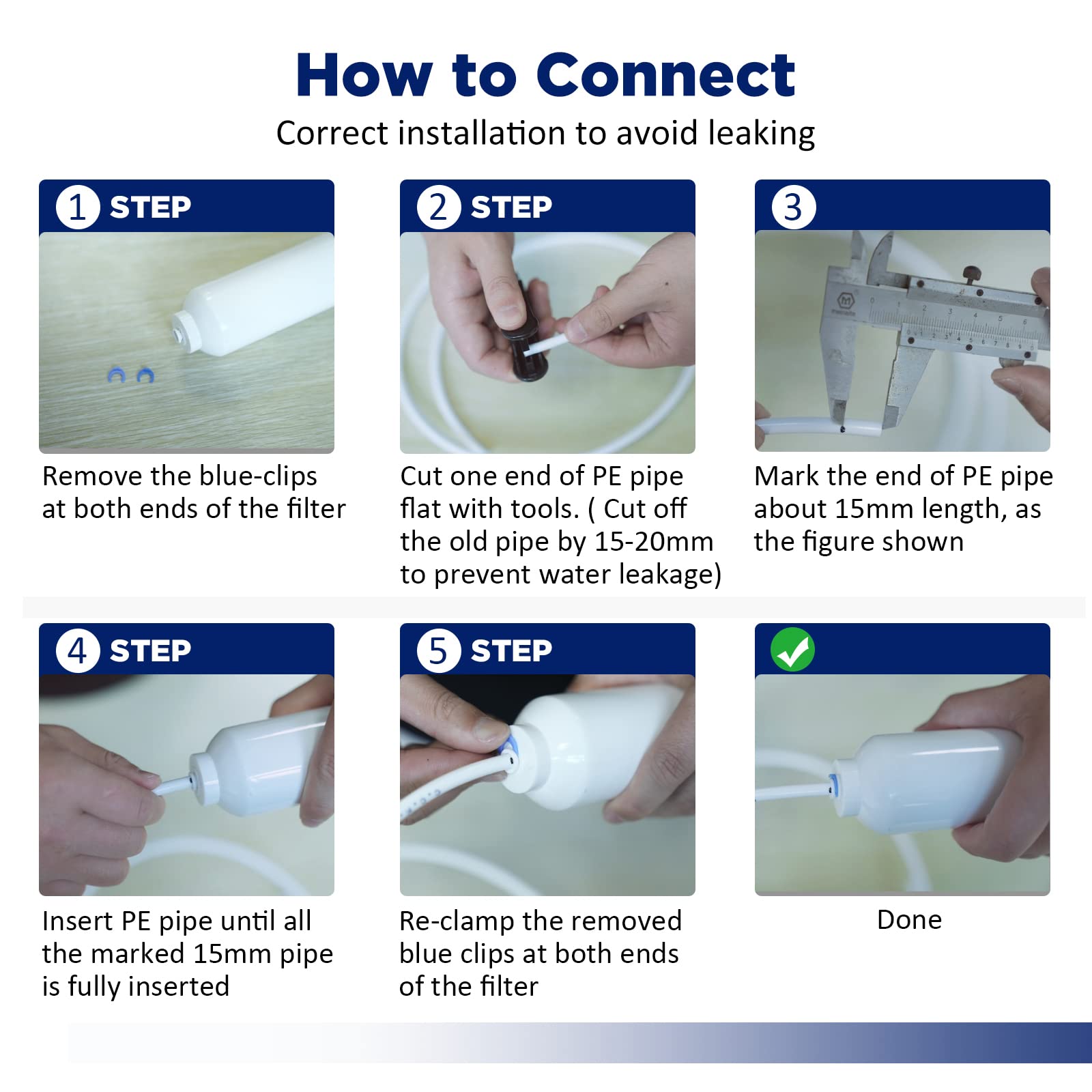 EASY INSTALLATION – Comes with built-in 1/4-inch quick-connect fittings. Simply push the tubing in, no tools needed. Be sure to follow the flow direction (inlet/outlet).
