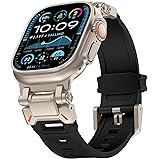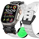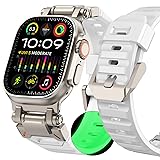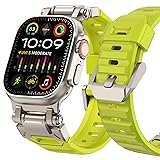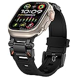 Wingle FKM Rugged Bands Compatible with Apple Watch Ultra 2/ Ultra Band 49mm/45mm/44mm/42mm for Men, Military Sport Strap for iWatch Series SE2/SE/9/8/7/6/5/4/3/2/1 with Stainless Steel Connector