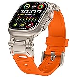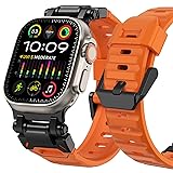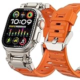 【Rugged yet Active Look】The metal connector is made of premium 316L stainless steel, features orange accents to complement your Apple Watch Ultra. Two joints of metal connector and the connection with rubber strap are bendable, flexible twisted metal pieces allow the band to fit wrist better. 26mm boldly wide and 3mm thick apple watch bands for men is the ultimate answer to showcase your toughness and rugged charm.