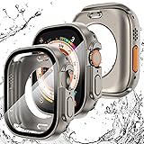 【2 in 1 360° Protection】Apple Watch ultra 2 cover guard with premium hard PC frame and rear cover, 9H hardness built-in 0.33mm ultra thin HD Clarity temper glass screen protector. The 2-in-1 design overall protect the screen and curved edges of the watch from bumps, shatter, scratches, cracked and accidental drops.