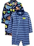Description This 2-Pack One-Piece Long Sleeve Zip-Up Rashguard Swimsuit for Boys from Simple Joys by Carter’s combines comfort, protection, and playful style for the ultimate summer gear. Designed with fun, vibrant prints and colors, it will keep your little one excited for every swim. The UPF 50 rating offers excellent sun protection, ensuring that they stay safe from harmful UV rays while enjoying the outdoors. Featuring a full zip closure for easy on-and-off, this swimsuit provides a snug fit with added convenience. The long sleeves provide extra coverage, making it perfect for days at the beach, pool, or any water activity. Whether splashing around or lounging under the sun, this rashguard swimsuit is the ideal choice for active boys who love to make a splash!