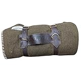 Leather Carrier with D-Rings and Detachable Strap for convenient travel and storage from fireside to sporting events and anywhere else a cozy wool blanket is needed