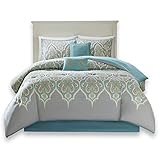 KASHMIR COMFORTER SET - Add an elegant touch to your bedroom with the Comfort Spaces Kashmir 8 Piece Comforter Set. The beautiful comforter features a large paisley print in a soft blue hue with a solid blue reverse for an exquisite look. Matching shams mirror the pattern of the comforter while the solid Euro shams coordinate with the bedding set to pull the entire ensemble together. Two decorative pillows one with embroidery and another with fabric manipulation add dimension and charm to the top of the bed. Completing the comforter set is a solid blue bed skirt with a 15-inch drop to give your bed a clean finish. Machine washable for easy care this ultra-soft microfiber comforter set brings style and grace to your space. SERVICE - If you don't absolutely love this product return it within 30 days for a full refund. We'll work with you to resolve any issue and ensure that you're satisfied with your experience.
