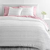 NAURAL SOFTNESS & COMFORT with this 100% Cotton cover. Cotton is known for offering exceptional softness and a breathable sleep experience. Enjoy this durable masterpiece providing year-round versatility. Down-alternative 100% polyester fill creates a perfect layering piece for your bed. Layer in sheets, quilts, and other designs by Martha Stewart.