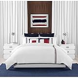 Give your bedroom a timeless update with the Signature Stripe Comforter Set from Tommy Hilfiger. The bold stripe with Tommy Hilfiger's iconic red, white and blue colors, surely adds a touch of fashion to any interior. Soft and luxurious, this 100% cotton percale set is Tommy Hilfiger's hero product and comes with a tie-closer at the end, along with a reversible pattern.
