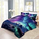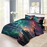 XIICOO Natural Aurora Themed Comfortcer Set Arctic Aurora Tranquil Night Sky Bedding Set |1 Comforter+2 Pillowshams(3Pcs) or Sheet (4Pcs) (C,QUEEN-4PCS)