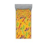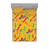 Lunarable Mexican Fitted Sheet & Pillow Sham Set, Elements Cactus Hat and Chili Pepper Pattern Over Grunge Background Print, Decorative Printed 2 Piece Bedding Decor Set, Twinxl, Dark Yellow