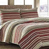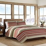 Upgrade your bedding with the Eddie Bauer yakima valley heritage collection. Features a handsome multi-color stripe in bright shades of greens, oranges and blues. Reverses to a monochromatic geometric print in blue. Made from 100% cotton, the quilt set is breathable and long lasting. Pre-washed for extra softness. Filled with a blend of 80% cotton and 20% polyester, Eddie Bauer quilts are lightweight but warm. Shams are included to round out the ensemble. (one sham included with twin size.) rounded corners and unique diamond quilt stitch are the details you'd expect from Eddie Bauer. Packaged thoughtfully without plastic. Machine washable for easy care. Available in multiple colors, other colors sold separately