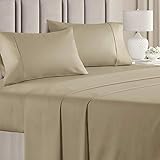 Our 100% Natural Cotton sheets are smooth and soft! Perfect for creating a relaxing bedroom and natural sleep Made in India from 100% Cotton Long Staple Yarns; these sheets are crisp and fresh, and will provide you with a comfort that no microfiber or polyester fabric can compare to. Features and Key Details: -100% long staple cotton provides a soft & silky strength that lasts -Made from all-natural, chemical free, 100% Cotton -Long Staple Cotton and Smooth Sateen Weave -True and tested 400 thread count Sheets -Fits mattresses perfectly up at 16”. Full Size 4-piece sheet set contains: -1 flat sheet: (81x96) -1 fitted sheet with full elastic with 16” deep pockets: (54x75) -2 full sized pillow cases: (20x30) Luxurious sleep begins with quality, luxurious sheets. If you’re like most people, you’ll love the comfortable feel of 100% cotton sheets when you climb into bed each night. It’s like having your own personal cloud to snuggle into. And we believe the sateen weave leaves you feeling like royalty after a healthy night’s sleep. Studies have shown that we spend approximately one third of our lives in bed sleeping and that sleep is a key component of overall good health. That’s why we use 100% Natural Cotton, of the highest quality. Since cotton sheets have a natural cooling effect you will enjoy a more refreshing sleep than artificial fabrics such as microfiber, polyesters, or nylon. Happy sleeping!