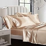 Detail: King Size Satin Sheet Set. 1 Flat Sheet (108 inch x 102 inch), 1 Fitted Sheet (78 inch x 80 inch+15 inch), 4 Pillowcases (20 inch x 40 inch)