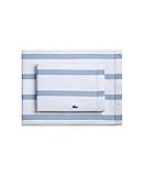 DELUXE BED SET — This set includes a twin flat sheet (66"W x 96"L), a twin fitted sheet (39"W x 75"L x 16"D), and one standard pillowcase (20"W x 27"L). Add a Lacoste blanket and some throw pillows to complete the look.