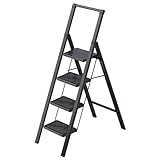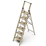 【Folding & Portable Ladder】Featuring compact design, the foldable ladder fold tightly just 2.1" especially friendly to those who have limited storage space. Also, it's easy to move around from your living room, pantry to garage at will.