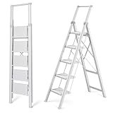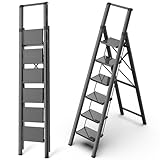 【Tall Step Ladder for Home】Our 5 step ladder is suitable for reaching home high ceilings, cleaning ceiling fans, organizing bedroom closet, changing lightbulbs and maintaining smoke detectors etc.