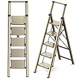 【Novel Upgraded Widened Tread】This 5 step ladder folding step stool is 7.9" wider than the previous 6.9" one, offering large stampede area and reducing fatigue during long hours of work.