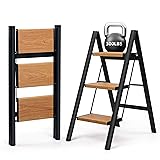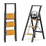 Safe Climbing: The 3 step ladder features wider and textured anti-slip pedals to keep you steady with every step. The rubber feet grip firmly to the floor once fully opened without wobble and slipping