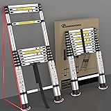 Telescoping Ladder Extension Telescopic Collapsible - 12.5 FT Rv Telescope Foldable Extendable Tall Compact Aluminum Ladders - for House Roof Travel Trailers Adjustable Retractable - 330lbs Capacity Sliver