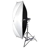 Shoot-through umbrella combines with softbox and grid and allows for many uses.