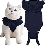 【Cotton Elastic Fabric】Soft Cat Recovery Suit super breathable and light.Heavy-duty pleated lace collar,daily wear can be lovely.Perfect to use after shave to keep warm.Reduces anxiety during weaning period.