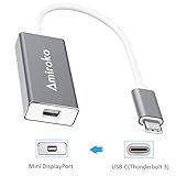【Amiroko USB-C to Mini DP Adapter】: Connects a computer with USB Type C port(Thunderbolt 3) to a Monitor/Projector with Mini DisplayPort/ Displayport/ VGA input, and you need an extra "Mini DP to Mini DP/ DP/ VGA Cable" for connect to your displays, monitors and projectors. Easy to use, no external power or additional driver required.