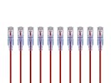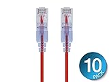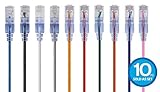 At half the size of standard Cat6A patch cables (0.149" v 0.29"), SlimRun Cat6A helps reduce congestion in high-density environments, such as data centers and telecommunications rooms. With SlimRun Cat6A, you can fit more cables in the same space, saving you the time and cost of expanding or replacing cable pathways. SlimRun Cat6A is much thinner and lighter than standard Cat6A cables. The 0.118-inch diameter, 30AWG flexible cable and snagless narrow boot design is easier to install/uninstall and takes less space than conventional 23 or 24 AWG Cat6A cables. Monoprice's 10-Pack Cat6A, 30 AWG, RJ45 Ethernet Patch Cable provides universal connectivity for LAN network components such as PCs, computer servers, printers, routers, switch boxes, network media players, NAS, VoIP phones, PoE devices, and more.