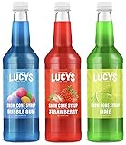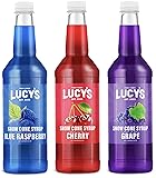 Unmatched Flavor. Homemade family snow cone syrups recipe using authentic Mexican Flavors to create a taste that is both sugary and sweet! Why Buy Lucy's Syrups? We promise to provide the greatest value for your dollar as we seek to consistently remain the best priced 32oz Slushie Syrups options on Amazon! Multi-Purpose. Used with Shaved Ice, Popsicles, Mixed Fruit, "Aguas Frescas", and a variety of creative dessert recipes. Just pour these flavors onto to your fresh snow made from a snow cone machine! What the Pros Use. Used by Nationwide Food Distributors, Restaurants, Vendors, and everyday Families. Your snow cone cups have never been filled with so much flavor! Consistent and Safe. Perfect addition to your snowcone maker or machines or other snow cone supplies. Our Snow Cone Syrup is made to satisfy. 100% consistent flavor that is safely packaged for your immediate use. Made In the USA