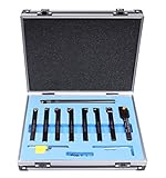 Shank Size (H x W): 3/8" x 3/8"Black oxided smooth finish on each turning tool holder style and shank size.Each tool holder comes with a C6 TiN coated carbide insert with positive rake cutting angle and built-in chip breaker great for general purpose cutting action.Insert screws and wrench included. 7Pcs indexable turning tool holder. 7Pcs TiN coated C6 carbide inserts. 7Pcs hex screws. 3Pcs hexagon keys.Details, recommended cutting speeds and specifications are in the description