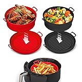 AIR FRYER ACCESSORIES: Each pack comes with 3 round silicone liners along with an air fryer magnetic cheat sheet to provide you with a simple, quick, and convenient way to make delicious meals while protecting your dual air fryer baskets and provide easy clean up.