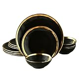 STACK EVENTLY AND SAVE SPACE: Easily stackable to storage efficiently and 𝐬𝐚𝐯𝐞 𝐬𝐩𝐚𝐜𝐞 𝐨𝐧 𝐲𝐨𝐮𝐫 𝐭𝐚𝐛𝐥𝐞 𝐚𝐧𝐝 𝐜𝐚𝐛𝐢𝐧𝐞𝐭, no matter how many pieces you buy, you can stack them together to save cupboard space without toppling risk. The color Ink dinnerware sets are freezer, dishwasher safe and oven safe, easy to clean, 𝐛𝐮𝐭 𝐜𝐚𝐧’𝐭 𝐛𝐞 𝐩𝐮𝐭 𝐢𝐧𝐭𝐨 𝐦𝐢𝐜𝐫𝐨𝐰𝐚𝐯𝐞