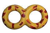 The GoughNuts TuG was designed to address the simple but serious issue of SAFETY. The GoughNuts TuG was designed knowing that safety and fun go hand to mouth (a dog's jaw)! The Goughnuts TuG is an interactive tough, durable product. Please continue to rely on our GoughNut Rings (that have a safety indicator) for constant power chewing. The GoughNuts TuG Original Orange is for larger dogs. The Tug is 9 inches length, 5 inches in width, and has a 1.375 inch cross section. Our goals remain the same in that we want to provide the safest possible products that are durable and fun. The rubber is the same recipe as used on our rings but we have marked the outside with red to show that here is not a safety indicator in this product (as again it is for interactive play versus constant chewing). In the case of the TuG we are trying to protect the person as well as the dog. Please understand and consult a professional and or GoughNuts Team member if there are questions as to the function and safe play for you and your dog. Great toy for tug of war and a virtually indestructible pull toy for aggressive chewers
