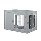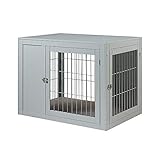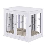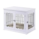 unipaws Pet Crate End Table with Cushion, Wooden Wire Dog Kennels with Double Doors, Modern Design Dog House, Medium and Large Crate Indoor Use, Chew-Proof
