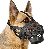 Tough & Durable Material: Made of pliable and flexible rubber, our muzzle for large dog is tough and long-lasting for daily use The two rubber parts and the folded webbing design on the sides hold the muzzle for medium sized dog in place nicely and make the dog muzzles fit your dog well The breathable hollow basket design provides maximum ventilation for dogs Additionally, the smooth inner surface ensures the basket muzzle for dogs won't irritate or rub against the dog's nose