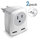 【One Adapter Replaces 3 Chargers】JARVANIA European plug adapter combines dual USB ports and 1 US socket together, allows you to charge 3 electronics simultaneously, such as: iPhone, iPad, Power Bank, Camera, Earbuds, Kindle, Laptop and more.`