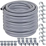 Introduction Neorexon outdoor electrical conduit is pure PVC conduit. It has the rigidity of the metal and the flexibility of the properties that you can modify to suit your needs which is anti-corrosion and anti-rust, ideal choice for the insurance for electric wires outside. Features Non-Metallic liquid-tight conduit: Non-metallic liquid-tight conduit features Integral rigid and flexible PVC construction. Also, outdoor conduit Can be cut with utility knife or PVC cutter to meet special needs. Valuable Accessories: 1/2-Inch 150 Ft Flexible Electrical Conduit with 5 pieces Straight and 5 pieces of 90-Degree Conduit Connector Fittings No Sharp Edges Or Burrs:PVC material outdoor cable conduit features smooth surface that Smooth edge without burr, will not hurt hands, can be well inserted straight tube. Anti-Corrosion & Safety:Our electrical conduits is resistance to corrosion, wear, oil, water, acid, metal chips and rough environment; Resistance to pulling and crushing; Outdoor, sun resistant, directly buried, 50% lighter than metal conduit. Media conduit is a insurance for electric wires. Easy to install: Flexible conduit is super easy to install. Only one person can finish the work in a few minutes. Flexible conduit connectors are safe to use and do not require any tools. The dome seal nut can be tightened by simply pushing the conduit or pipe onto the ferrule. Multi-Applications:Sealtite conduit is widely application that mainly apply at HVAC Equipment, machine tools, marine equipment, motors and controls, printing equipment, pumps, refrigeration equipment, transformer connections, outdoor lighting. Specifications: Material: PVC Length: 150 ft Inner Size: 1/2 inch Package Content 1 X Liquid Tight Conduit 5 X Straight Conduit Connector 5 X 90-DegreeConduit Connector 10 X Conduit Straps