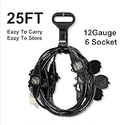 SPECIFICATIONS Plug: NEMA 5-15P Receptacle: NEMA 5-15R Rating: 15Amp 125 Volts Cable: SJTW 16AWG*3C Length: 25FT Color: Black UL LISTED POWER CORD Cords with UL certification MAXIMIZE THE USAGE OF POWER EXTENSION CABLE,SAY GOODBYE TO THE NORMAL ONES There are six equally spaced cable outlets in the distance,maximize the usage of the power extension strip. PACKAGE 1x Extension Cord,Six equally spaced outlet cables 1 Year warranty,If you have any questions, please contact us and we will reply within 24 hours.