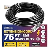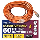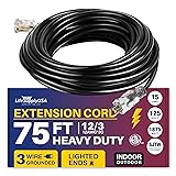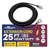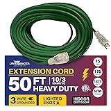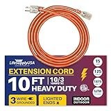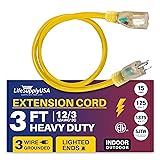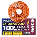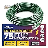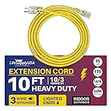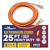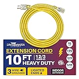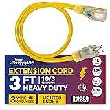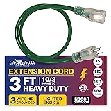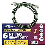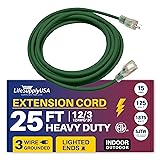 LIGHTED END FOR VISIBILITY & SAFETY: With a lighted end to indicate power and a brightly colored PVC jacket, this three prong extension cord minimizes tripping hazards and improves safety in busy or poorly lit areas. Stay safe while powering up with an easily noticeable extension cable. The innovative design not only enhances operational safety but also ensures that the indoor / outdoor power cord is easily identifiable among your tools and equipment, preventing accidental disconnections.