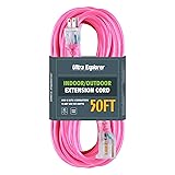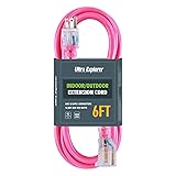 Pink Extension Cord 3 FT - 15 amps, 125 volts, 1875 watts, 5-15P/R. Thicker 12 gauge heavy duty extension cord ensures efficient power delivery without voltage drops, suitable for high-power appliances and tools. Whether you're running a lawnmower, hedge trimmer, or connecting multiple Christmas light strands, our cord provides the necessary strength and stability.