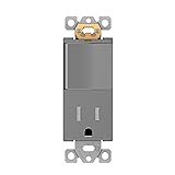 Residential grade combination electrical outlet with switch; features one single-pole paddle rocker switch and one tamper-resistant outlet; child-safe decorator receptacle increases safety by preventing unwanted objects from being inserted; complies with 2017 NEC Article 406.12