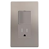 Brown color; 15A 120VAC single-pole paddle switch, 15A 125VAC tamper-resistant outlet; side wiring (#12-14 AWG copper wire only; instructions included); 1-year warranty; UL Listed