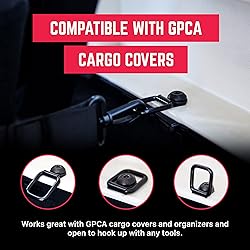 GPCA Jeep Wrangler Tie-down D-rings (Compatible to 1995-2019 Jeep Wrangler 2DR/ 4DR Tie-down D-ring dimensions). They are super strong with a heavy workload and make your Jeep cargo area/ trunk area much more versatile. They work perfectly with GPCA cargo cover LITE and open to hook up with any tools and organizers. Outside dimensions on D-ring is 1 1/4″. Hole size is 3/8″. Install the tiedowns in minutes to fully utilize all 6 mounting points in Jeep Wrangler rear cargo area. You can hook up with bags, tools, lights, cords, and wires *Compatible with GPCA Jeep Products.