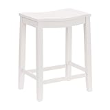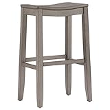 Whether you prefer a sunny, sandy beach or a windy, rocky shore, you'll love the coastal charm of this counter height stool. Versatile and on-trend, this backless counter stool features a wide, perfectly curved shiplap saddle seat for maximum comfort. The aged gray finish is reminiscent of a soothing summer rain in a quaint coastal town and is an easy addition to any decor. Durable wood flared legs add extra support and are complemented by perfectly a placed footrest adding an extra layer of comfort while eating, entertaining or working. Assembly is required.