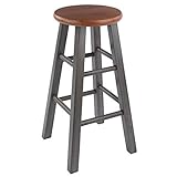 Bring charm and some color to your den, kitchen, or family room with the Winsome Ivy Counter Stool. With a round walnut-finished seat that complements the rustic light blue base. The weathered finish brings out the warm, handcrafted feel of the solid wood and will look right at home with either traditional or country decor. Featuring squared, slightly flared-legs with high and low crossbars on all four sides, for stability and comfort while serving as convenient footrest. This stool sits up at 24”H and with a conservative footprint that allows this stool to be tucked neatly underneath a counter or table when not in use. The seat is 12" in diameter, offering a generous seating area with a sturdy built that can hold a static weight of 220lbs. The simple but still appealing rustic edge of this stool allows it to be used as a side piece to house a small plant, lantern, or a vase. Conveniently shipped in one box and is ready to use, as no assembly is required.